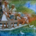 The traditional method of using watercolour on ivorine is to mark out the design with a few pale washes, then to build tone and colour gradually with fine stippling strokes. I generally use a modification of this method – starting with an overall blended wash, then subtracting as well as adding paint to reach the final image. It’s always better to paint in thin layers.